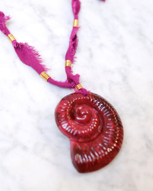 AgotadoCollar caracola lino burdeo