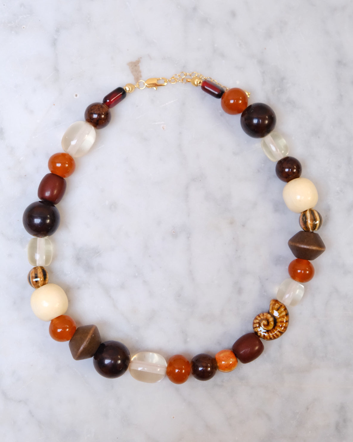 Collar de cuentas de piedras, vidrio, madera y plástico.